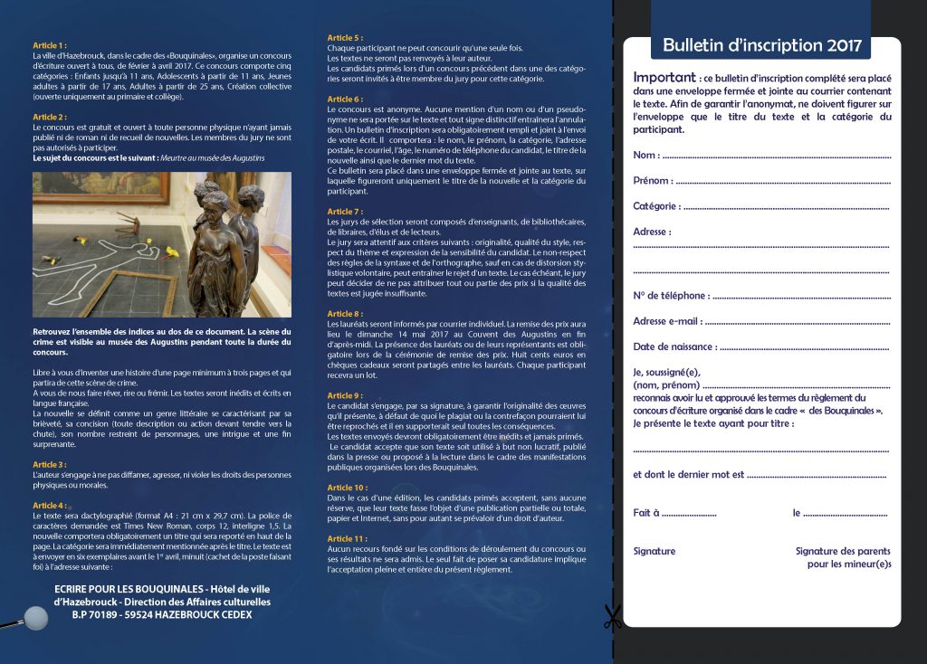 Vous trouverez ici le règlement de ce concours, il est disponible dans sa version papier à la mairie d’Hazebrouck et dans tous les commerces et lieux de culture de la ville.