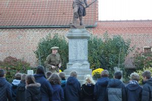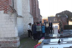 Lundi 6 novembre 2017, dans le cadre de la commémoration du centenaire de la Grande Guerre et en lien avec une démarche pédagogique interdisciplinaire, guidés par leurs enseignantes, les élèves de CM2 de l’école Lino Ventura de Blaringhem ont pu partir à la recherche de l’histoire du soldat Ernest Mackness tombé le 1er octobre 1917.