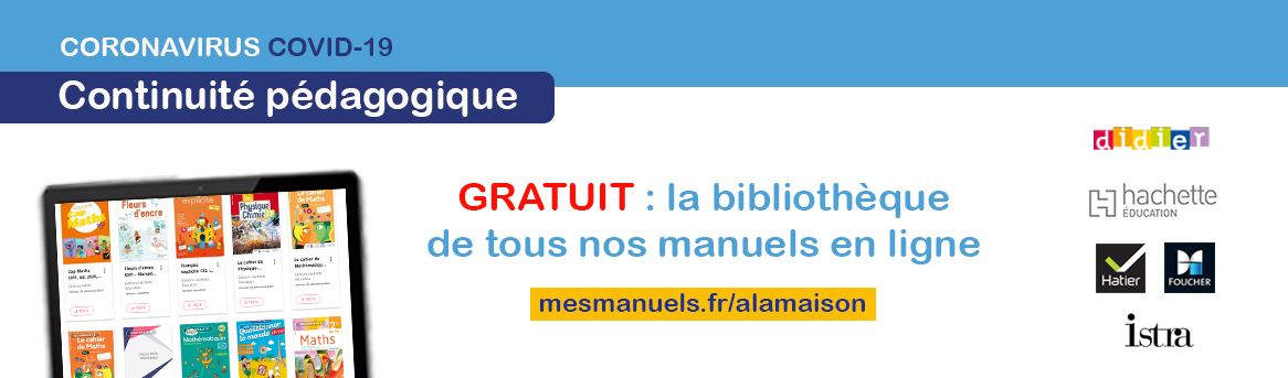Les éditions Hatier mettent en ligne gratuitement la totalité des manuels qu’elles distribuent. Cela permet d’envoyer vos élèves lire le texte p. 37 dans le manuel (resté en classe) ou faire l’exercice 4 de la p. 123 du fichier de maths. Une seule adresse à retenir : mesmanuels.fr/alamaison